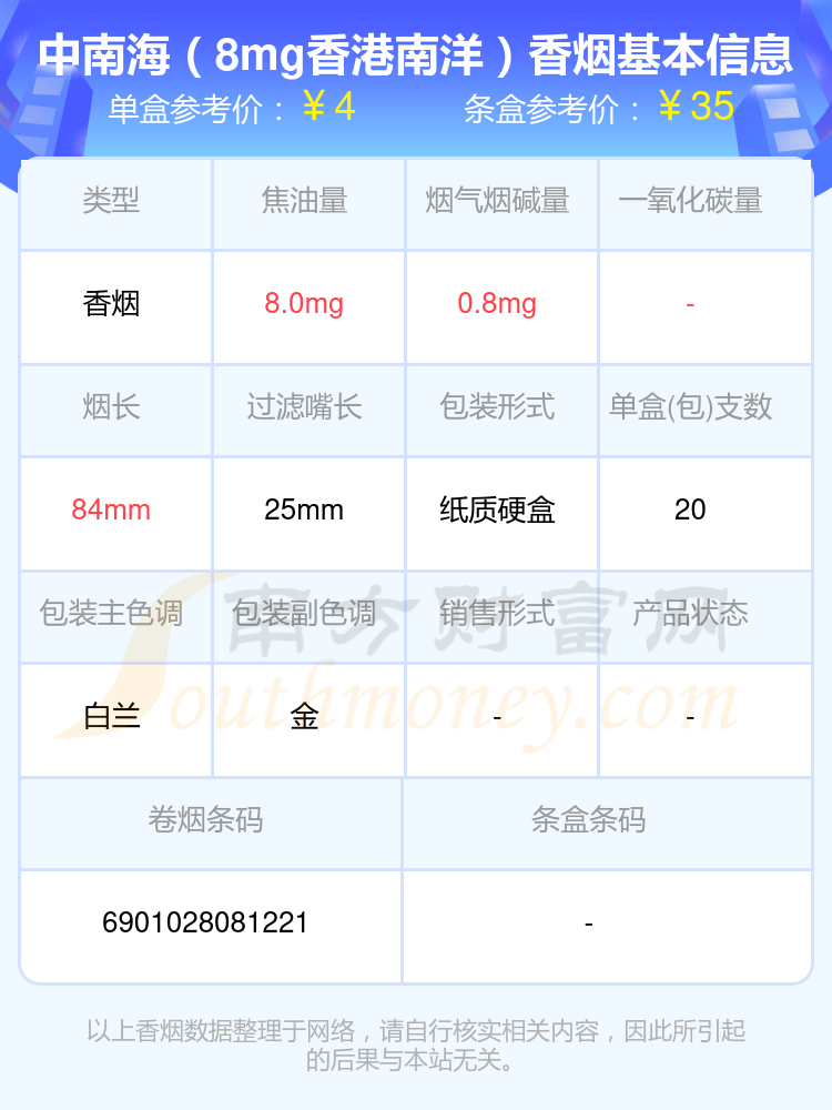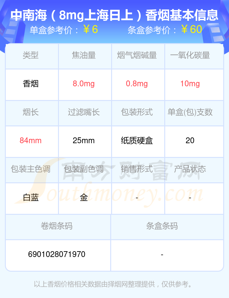 以上香煙價格相關數(shù)據(jù)由擇煙網(wǎng)整理提供,僅供參考。