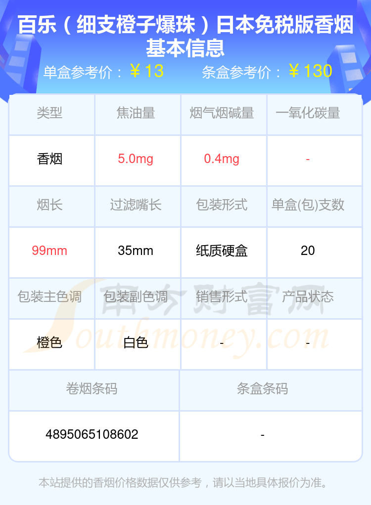 2、百樂(細(xì)支橙子爆珠)日本免稅版