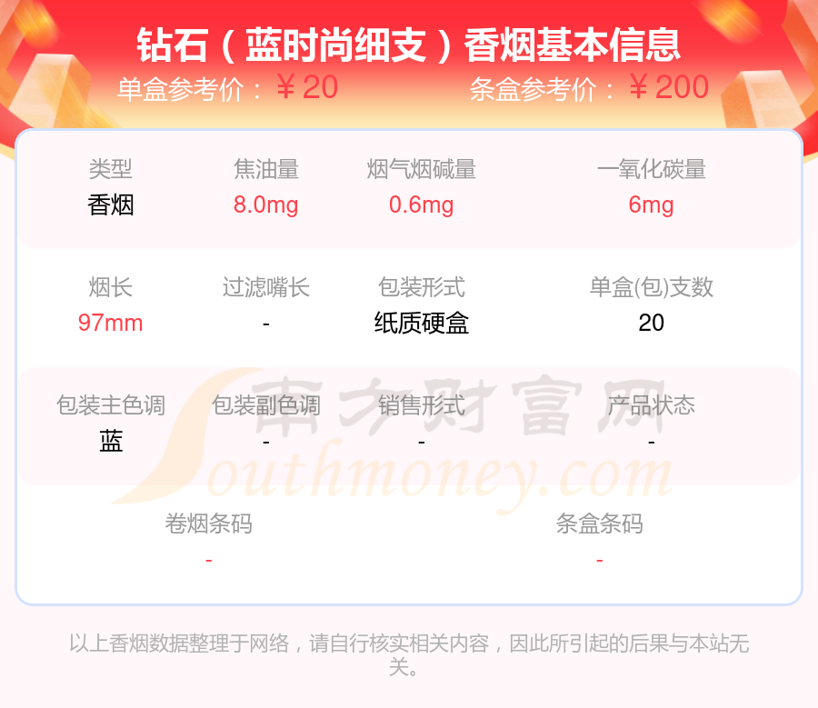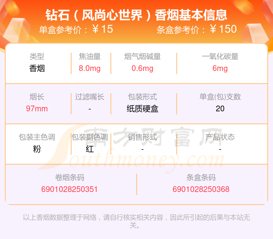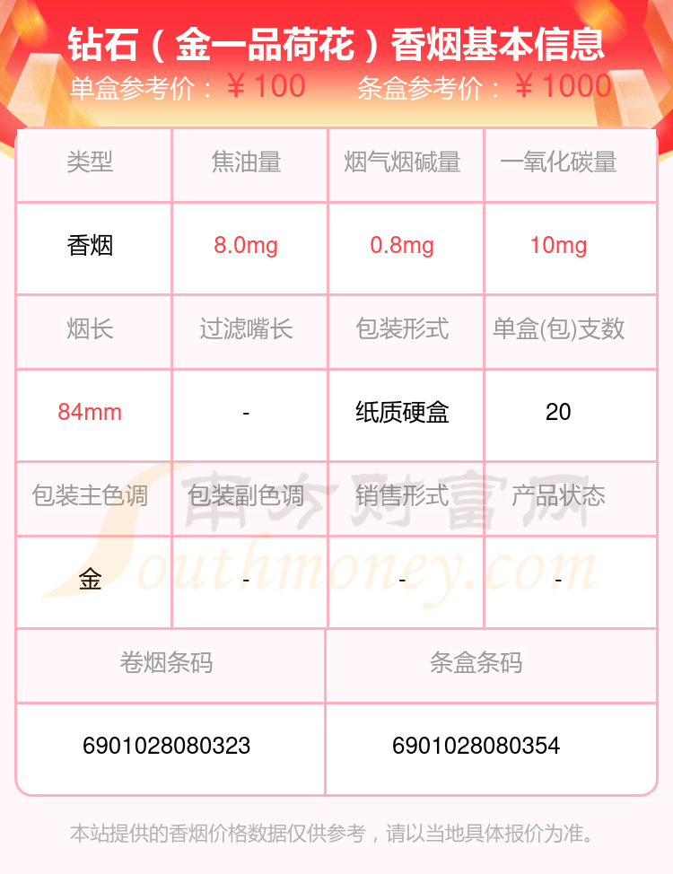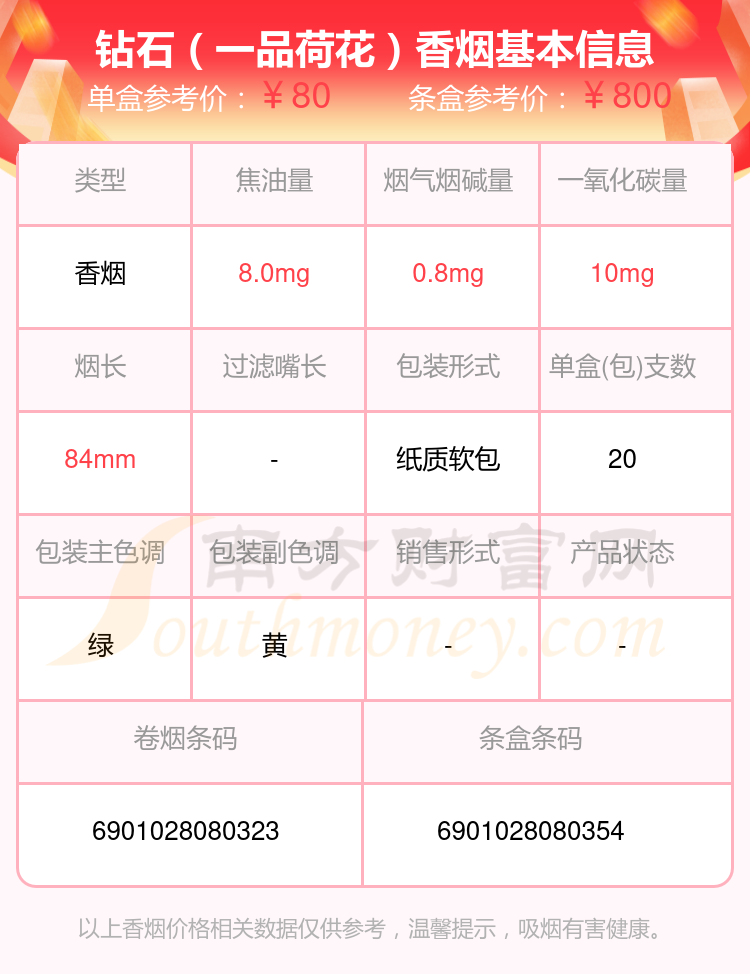 鉆石香煙焦油量低于8mg的煙有鉆石(金一品荷花)、鉆石(風(fēng)尚心世界)、鉆石(時(shí)尚粗支)、鉆石(金石)、鉆石(藍(lán)時(shí)尚細(xì)支)、鉆石(一品荷花)、鉆石(硬紅120)、鉆石(荷花綠水青山)、鉆石(紅雙喜)、鉆石(硬錦繡)等,具體價(jià)格如下: