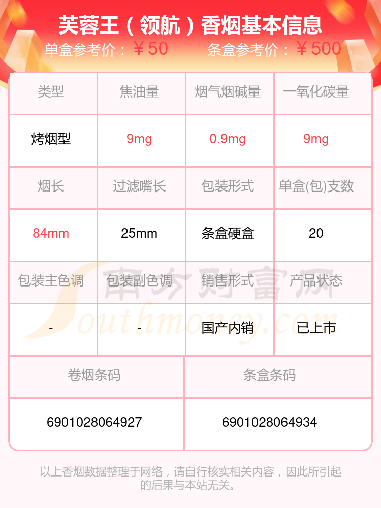 芙蓉王香煙焦油量低于10mg的煙有芙蓉王(硬領(lǐng)航)、芙蓉王(榮耀中支)、芙蓉王(榮耀中支)、芙蓉王(硬75mm)、芙蓉王(領(lǐng)航)、芙蓉王(軟金)、芙蓉王(鉆石)、芙蓉王(硬閃帶細(xì)支)、芙蓉王(硬閃帶75mm)、芙蓉王(硬藍(lán)閃)等,詳細(xì)價(jià)格如下: