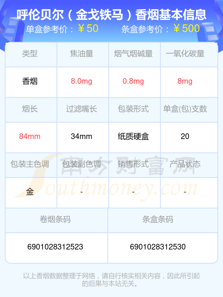 呼倫貝爾香煙40到50元左右的煙有哪些?擇煙網(wǎng)為大家整理提供,分別有:呼倫貝爾(金戈鐵馬)、呼倫貝爾(至臻)、呼倫貝爾(草原牧歌)等,具體價(jià)格如下: