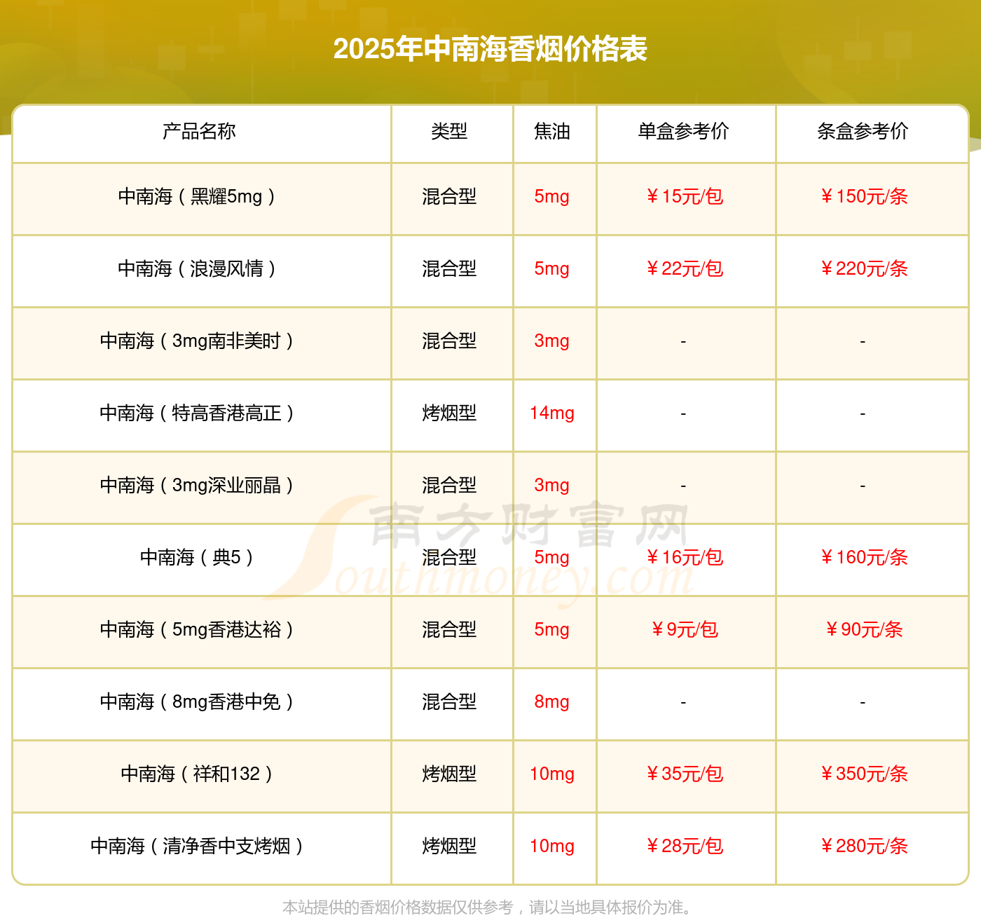 本站提供的香煙價(jià)格數(shù)據(jù)僅供參考,請(qǐng)以當(dāng)?shù)鼐唧w報(bào)價(jià)為準(zhǔn)。