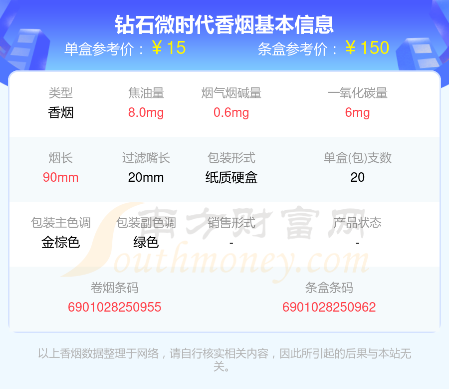 鉆石微時代條盒參考價:150元