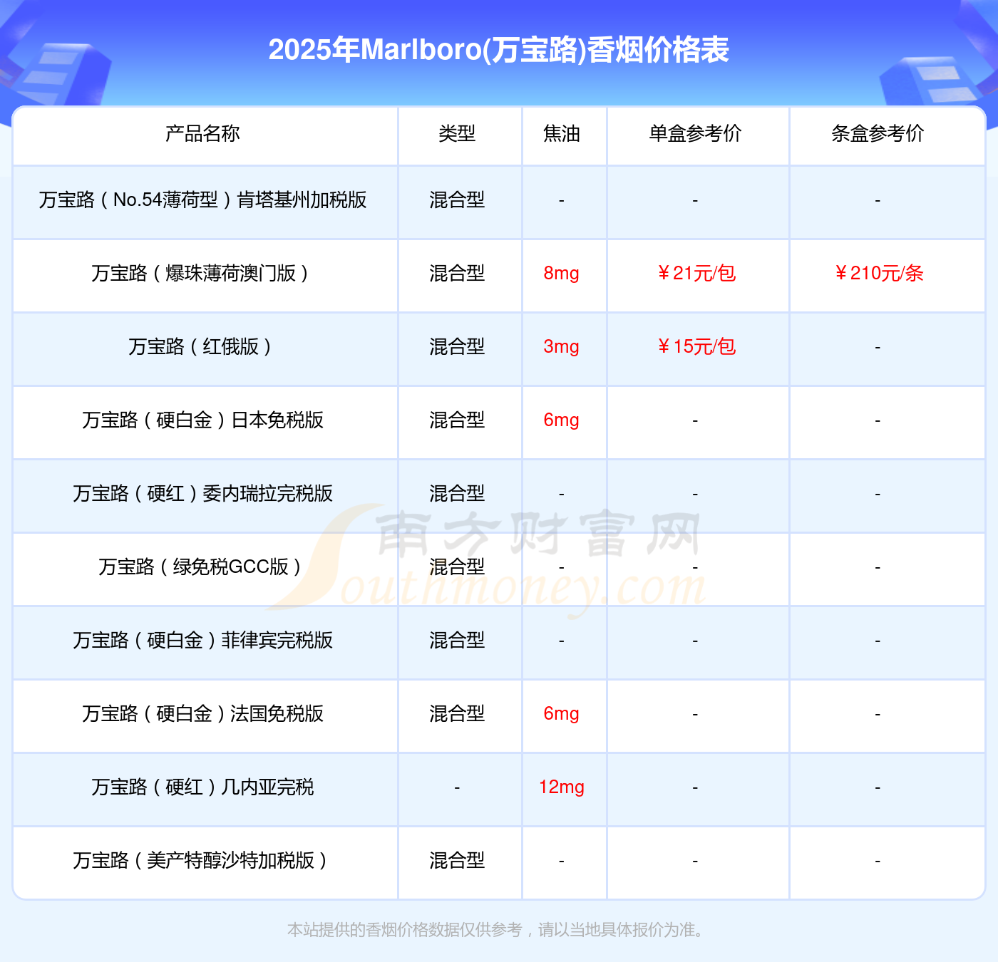 本站提供的香煙價格數(shù)據(jù)僅供參考,請以當(dāng)?shù)鼐唧w報價為準(zhǔn)。
