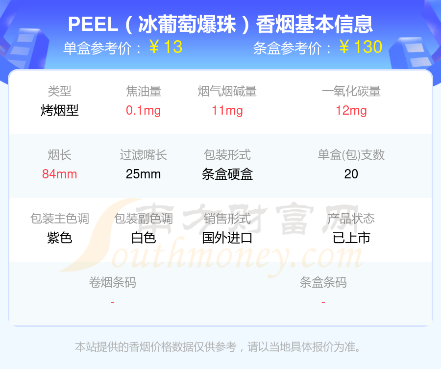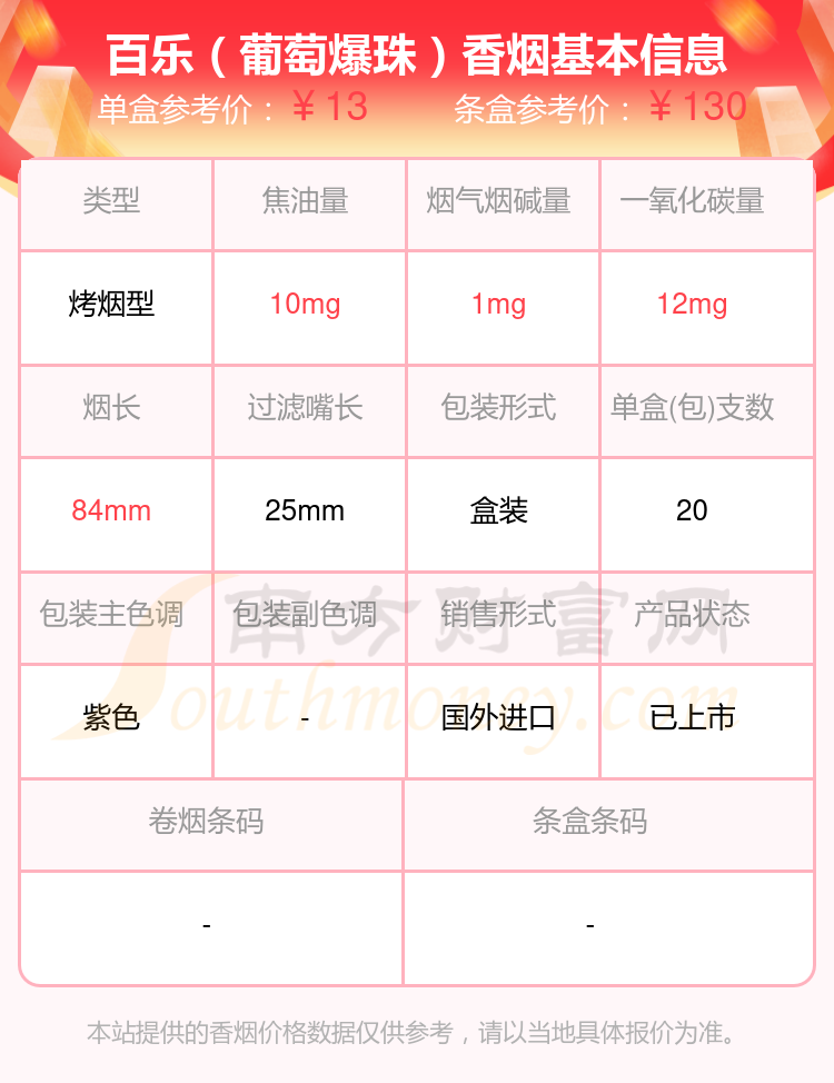 百樂(蘋果味爆珠)參考價(jià)15元/包、百樂(葡萄爆珠)參考價(jià)13元/包、百樂(葡萄日免版)參考價(jià)31元/包、PEEL(冰葡萄爆珠)參考價(jià)13元/包等。