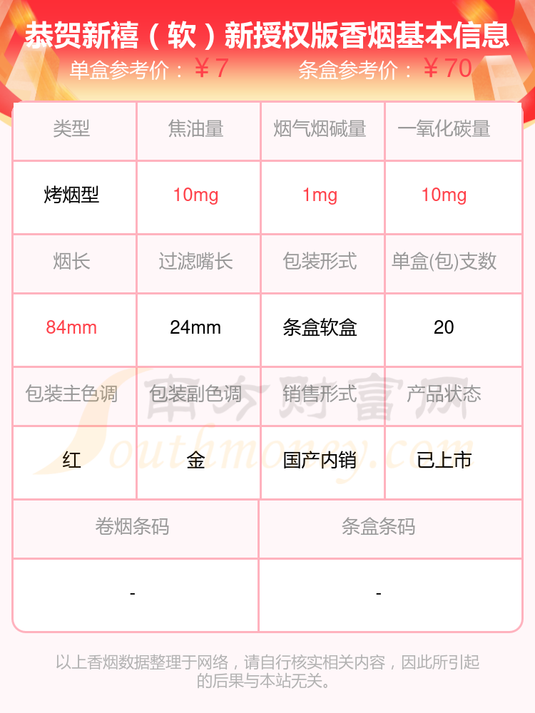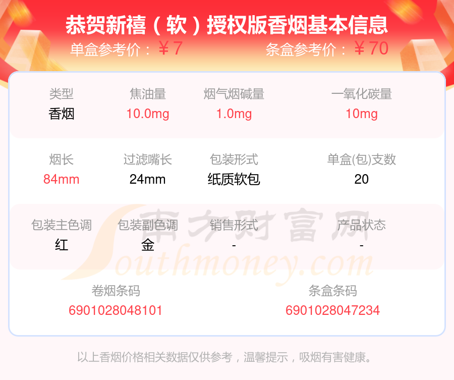 恭賀新禧(軟)授權(quán)版參考價(jià)7.0元/包、恭賀新禧(軟)參考價(jià)6.5元/包、恭賀新禧(軟)新授權(quán)版參考價(jià)7元/包等。