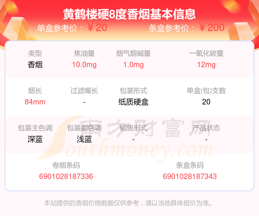 黃鶴樓硬8度單盒參考價:20元