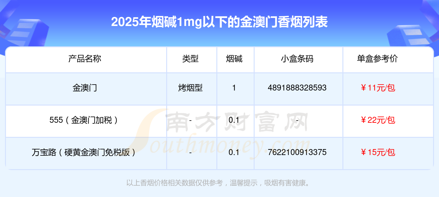 擇煙網(wǎng)為大家盤點了金澳門香煙煙堿1mg以下的煙,有以下這些: