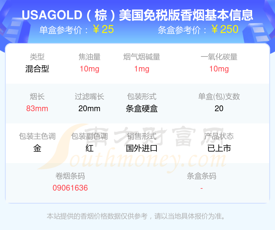 USAGOLD(棕)美國(guó)免稅版單盒參考價(jià):25元