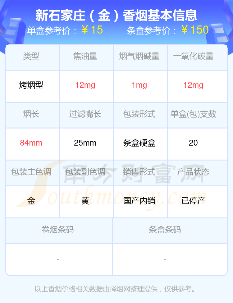 新石家莊(金)單盒參考價(jià):15元