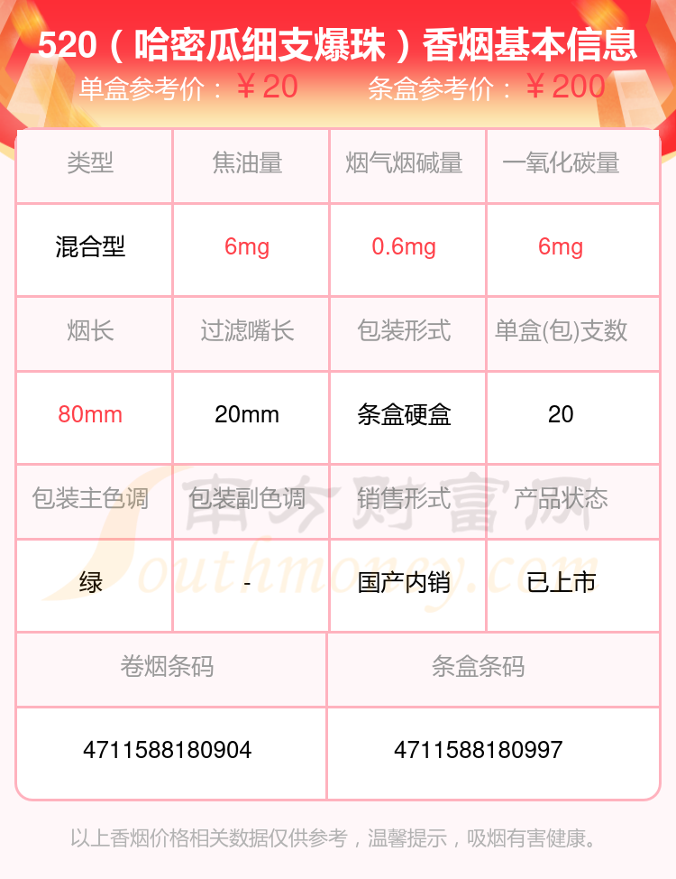 20到30元左右的520香煙有哪些?擇煙網(wǎng)為大家整理盤點(diǎn),分別有:520(薄荷細(xì)支爆珠)、520(藍(lán)莓爆珠)、520(哈密瓜爆珠)、520(蘋果爆珠)、520(哈密瓜細(xì)支爆珠)、520(水蜜桃爆珠)等,具體價格如下: