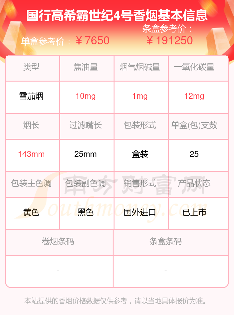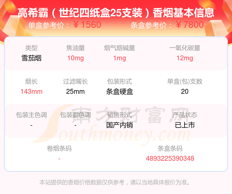 以上香煙價格相關(guān)數(shù)據(jù)僅供參考,溫馨提示,吸煙有害健康。