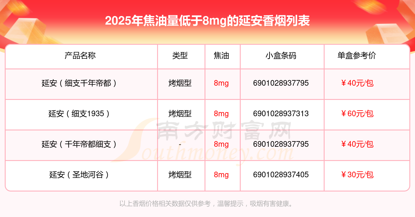 延安(細支千年帝都)參考價40.0元/包、延安(細支1935)參考價60元/包、延安(千年帝都細支)參考價40元/包、延安(圣地河谷)參考價30元/包等。