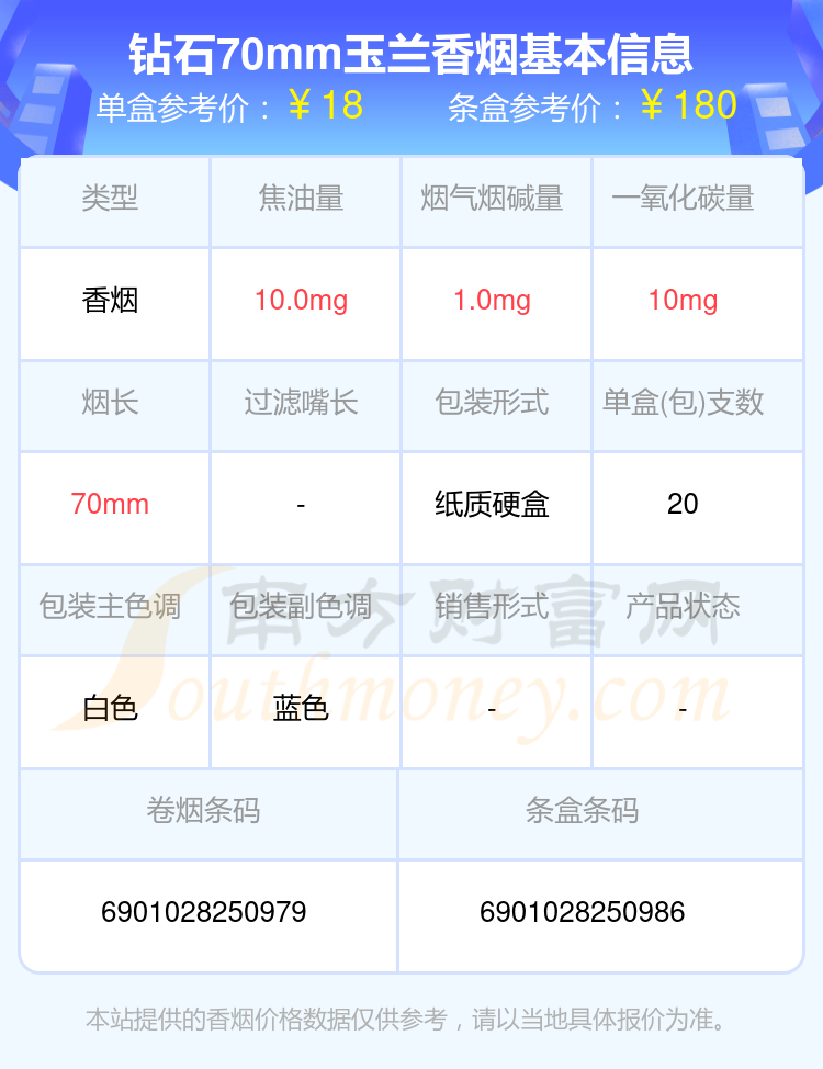 鉆石70mm玉蘭單盒參考價(jià):18元