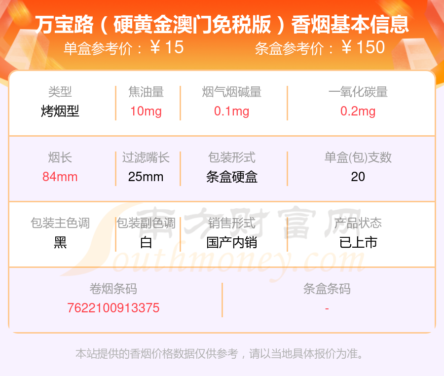 以上香煙數(shù)據(jù)整理于網(wǎng)絡(luò),請自行核實相關(guān)內(nèi)容,因此所引起的后果與本站無關(guān)。