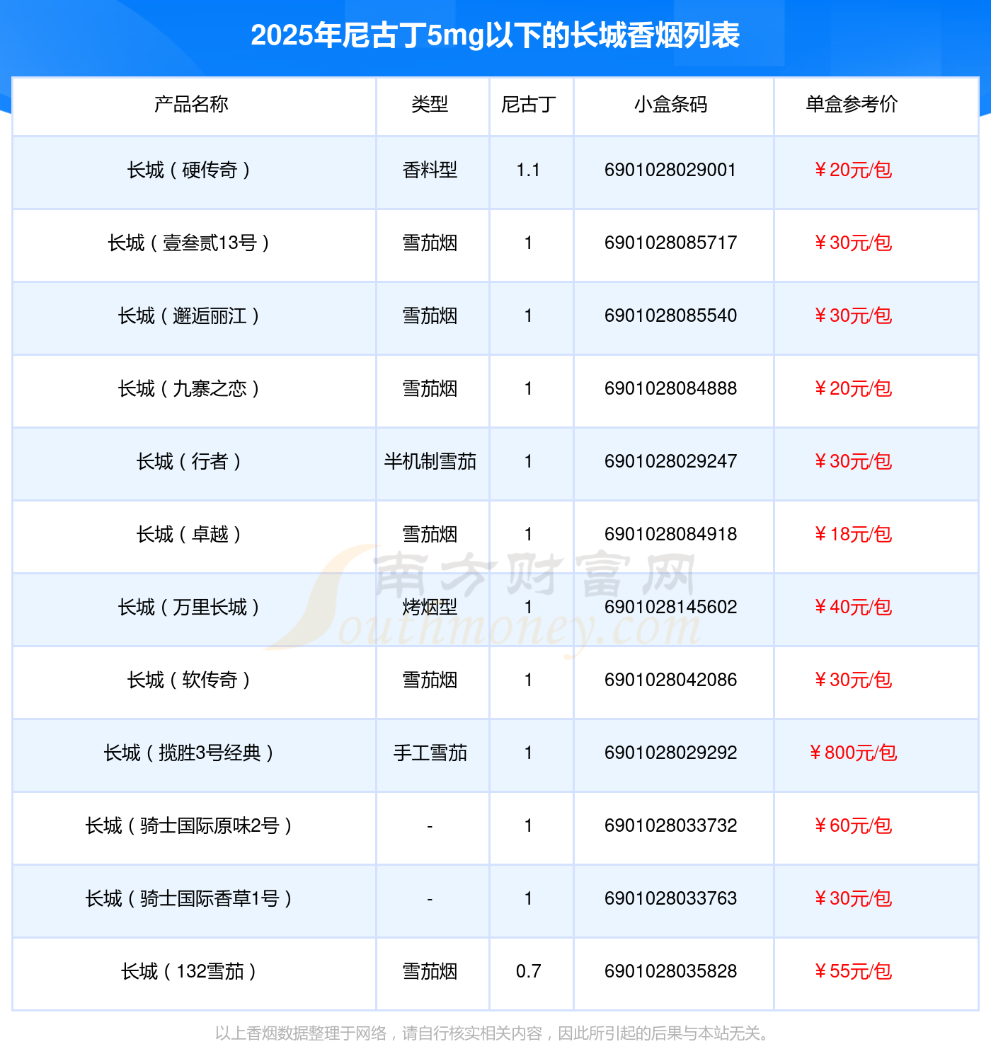 擇煙網(wǎng)為大家盤(pán)點(diǎn)了尼古丁5mg以下的長(zhǎng)城香煙,有以下這些: