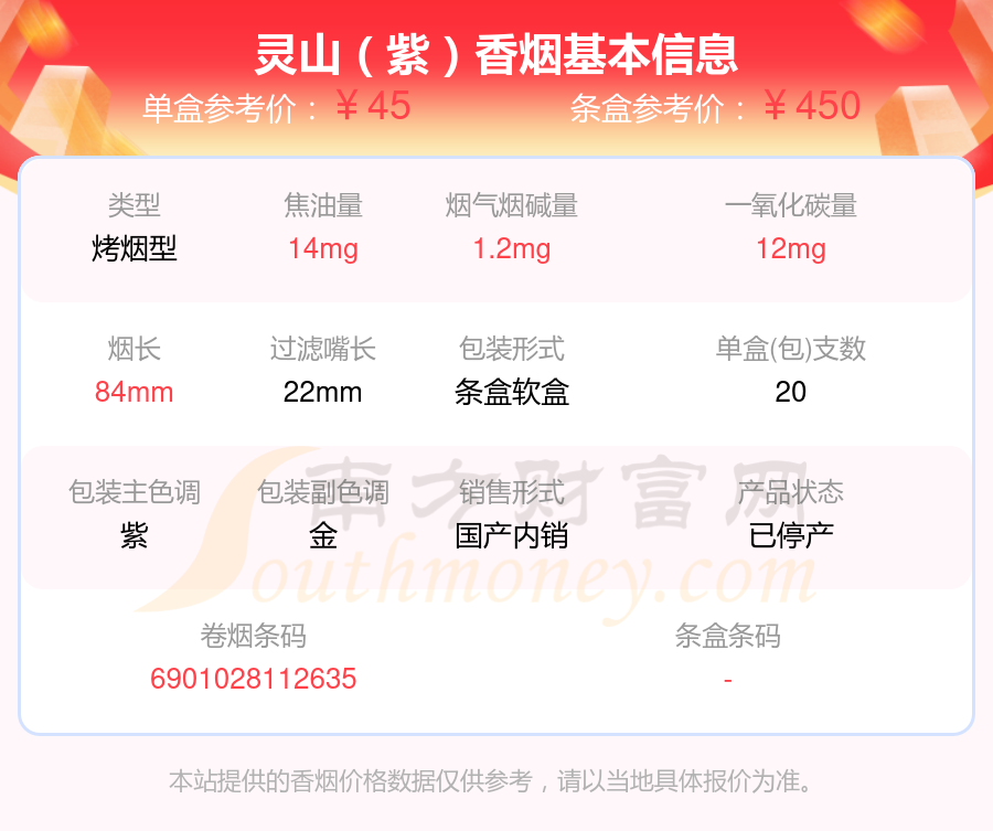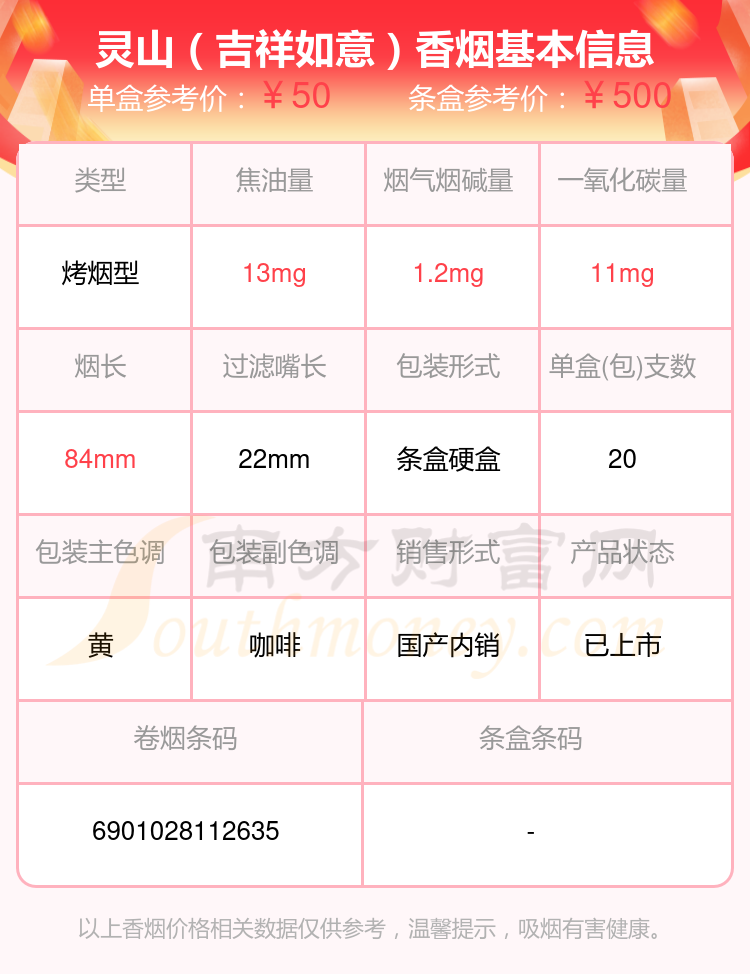 靈山香煙煙堿低于3mg的煙有靈山(吉祥如意)、靈山(紫)、靈山(世紀(jì)緣)、靈山(佳品)等,詳細(xì)價(jià)格如下: