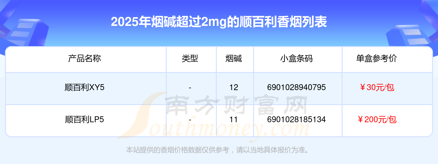 順百利XY5參考價30元/包、順百利LP5參考價200元/包等。