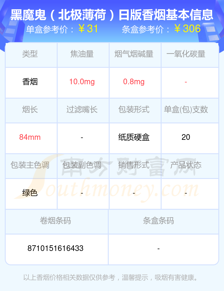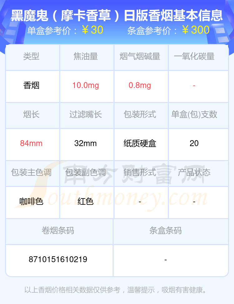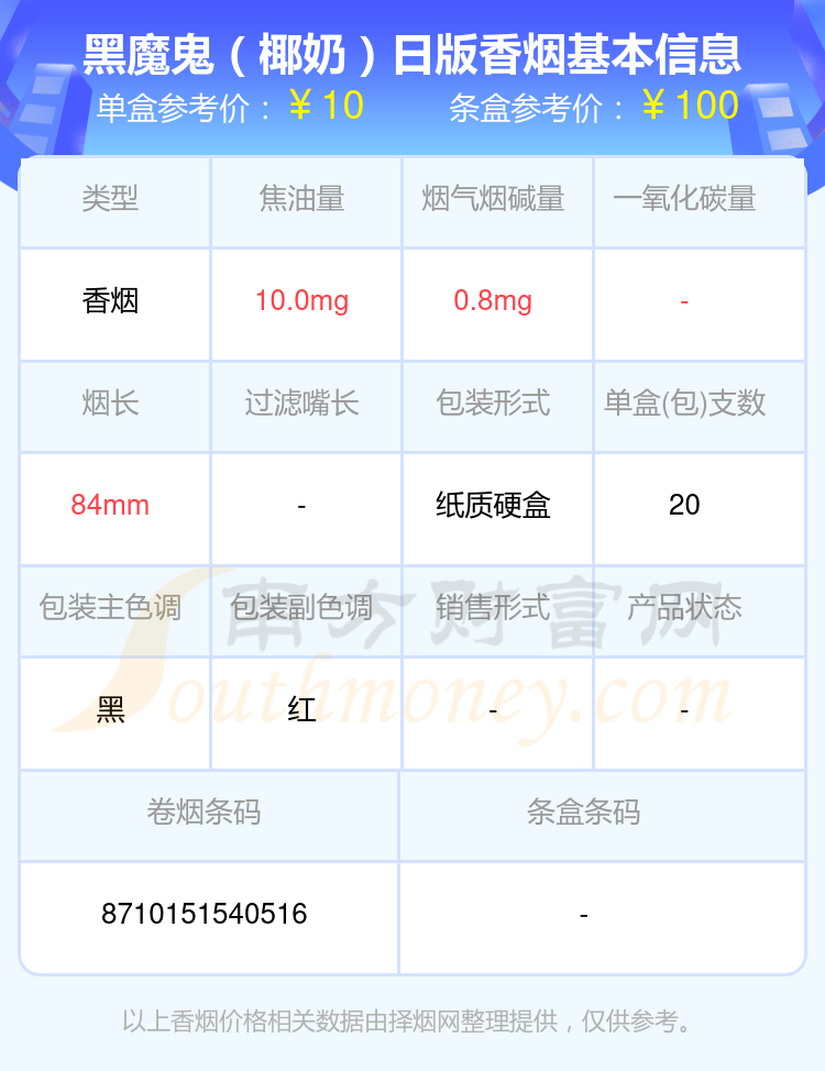 煙堿量低于4mg的BLACK DEVIL(黑魔鬼)香煙有哪些?擇煙網(wǎng)為大家整理盤點(diǎn),有黑魔鬼(椰奶)日版、黑魔鬼(巧克力風(fēng)味)10支裝、黑魔鬼(摩卡香草)日版、黑魔鬼(椰奶)10支裝、黑魔鬼(藍(lán)莓爆)、黑魔鬼(薄荷香草)日版、黑魔鬼(2000日版)、黑魔鬼(Chocolate)日版、黑魔鬼(北極薄荷)日版、黑魔鬼(強(qiáng)烈薄荷)日版等,詳細(xì)價(jià)格如下: