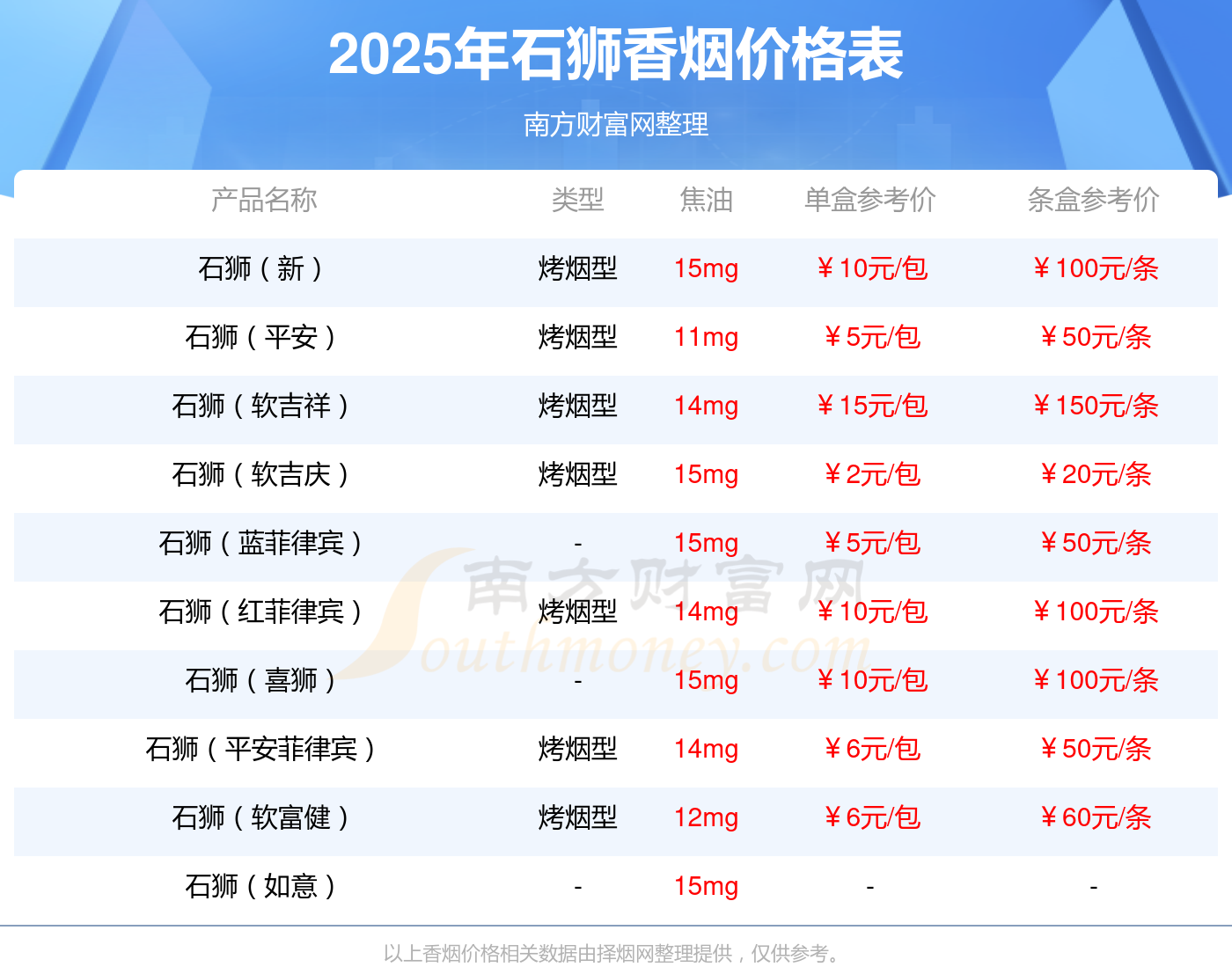以上香煙價格相關(guān)數(shù)據(jù)由擇煙網(wǎng)整理提供,僅供參考。