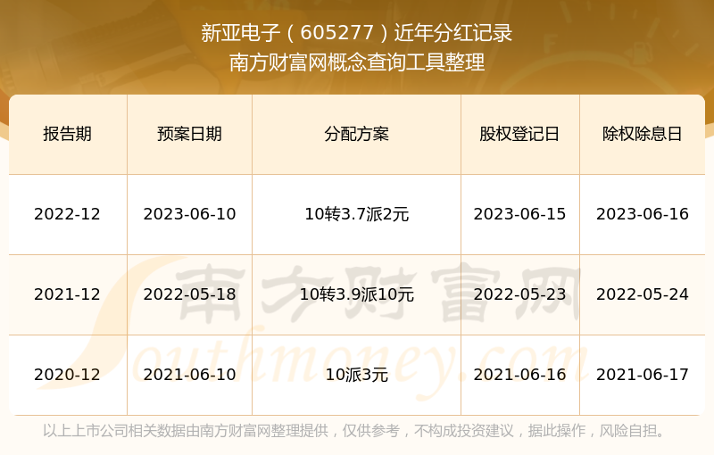 新亞電子最新一次公布的分紅方案:10轉(zhuǎn)3.7派2元。