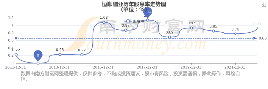 近年恒順醋業(yè)年度股息率走勢(shì)如下圖: