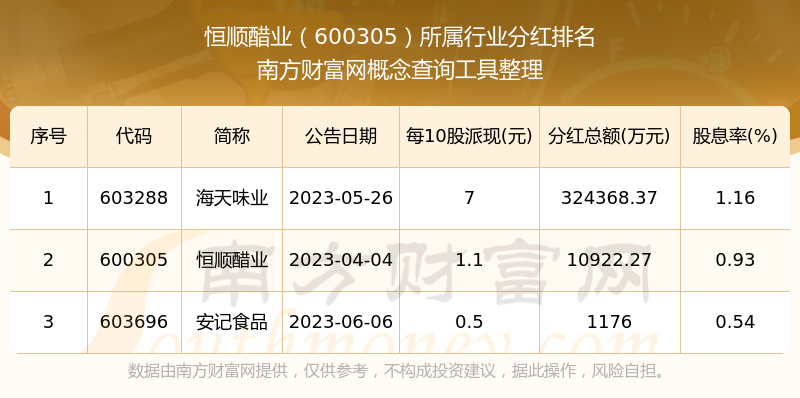 二、恒順醋業(yè)600305行業(yè)分紅排名