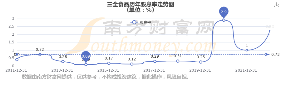 三全食品最新一次公布的分紅方案:10派3.5元。