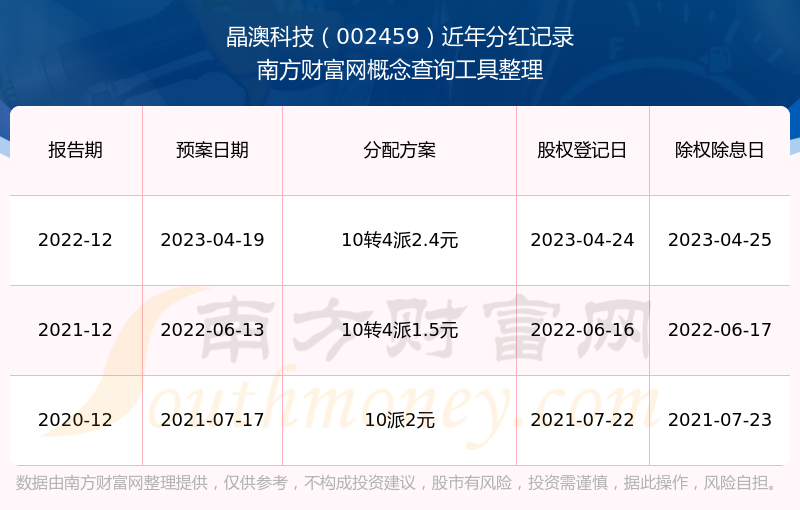 晶澳科技最新一次公布的分紅方案:10轉4派2.4元。