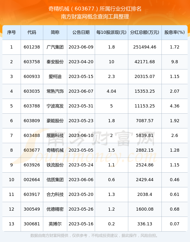 二、奇精機(jī)械603677行業(yè)分紅排名