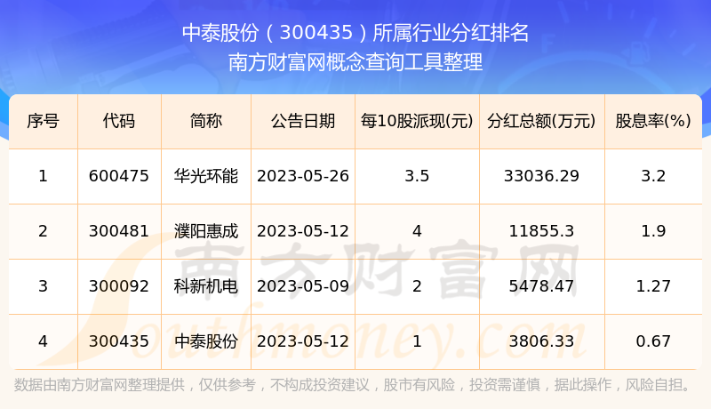 二、中泰股份300435行業(yè)分紅排名