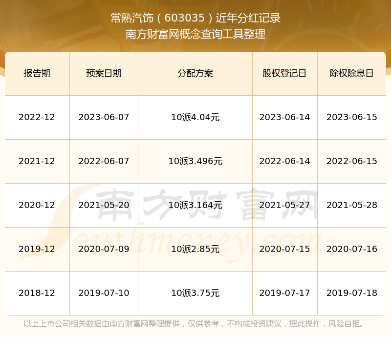一、常熟汽飾(603035)股票分紅記錄
