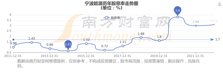 近年寧波能源年度股息率走勢(shì)如下圖: