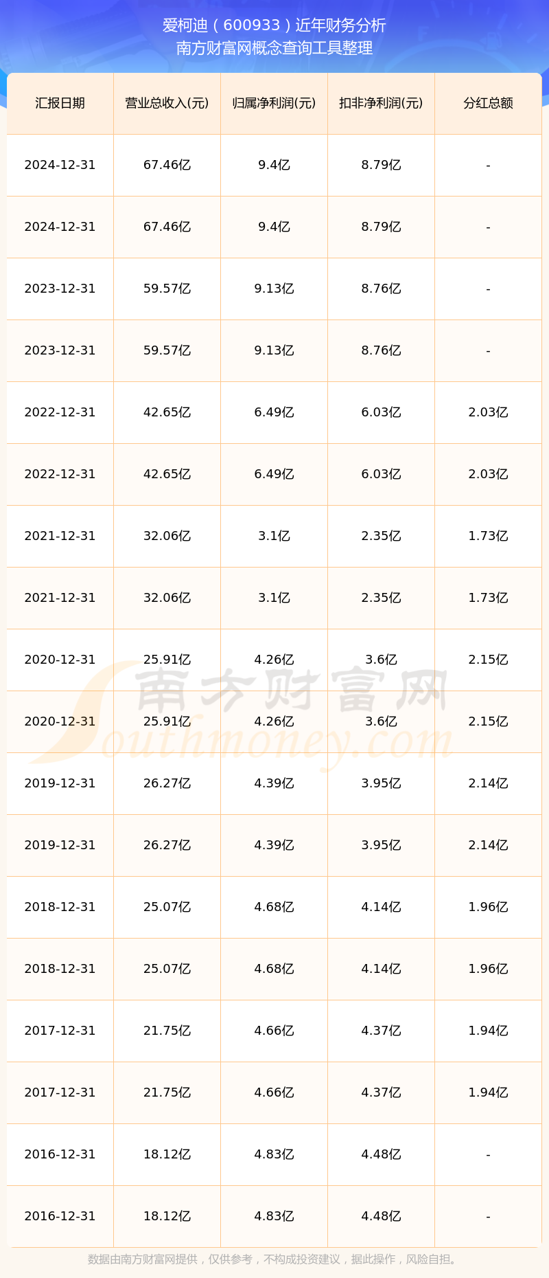 愛柯迪2024年總營收67.46億,同比增長13.24%;凈利潤9.4億,同比增長2.86%;銷售毛利率27.65%。