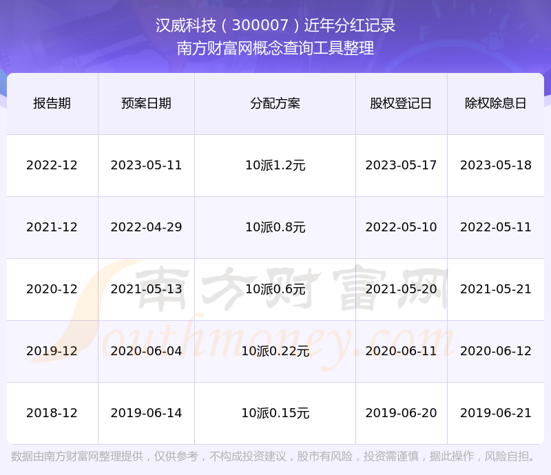 漢威科技最新一次公布的分紅方案:10派1.2元。
