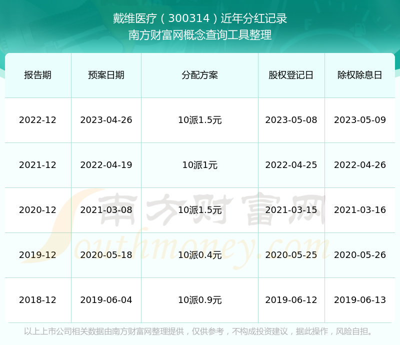 近年戴維醫(yī)療分紅派息情況如下表所示: