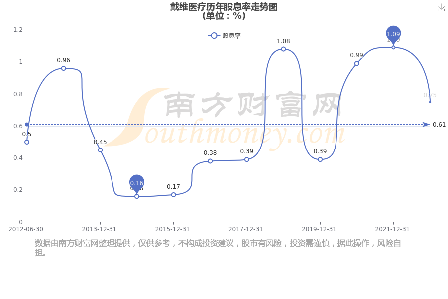 戴維醫(yī)療歷年股息率走勢如下圖: