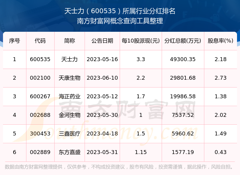 按照南方財富網(wǎng)趨勢選股系統(tǒng)統(tǒng)計,天士力所屬行業(yè)為中藥行業(yè),中藥行業(yè)分紅排名情況如下表: