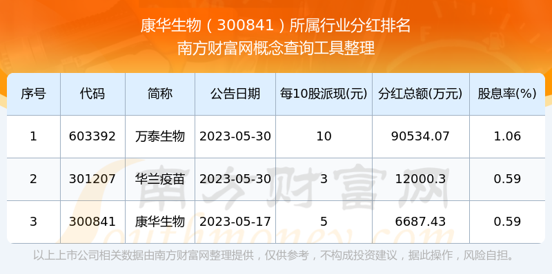 二、康華生物300841行業(yè)分紅排名