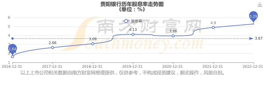 近年貴陽銀行年度股息率走勢如下圖: