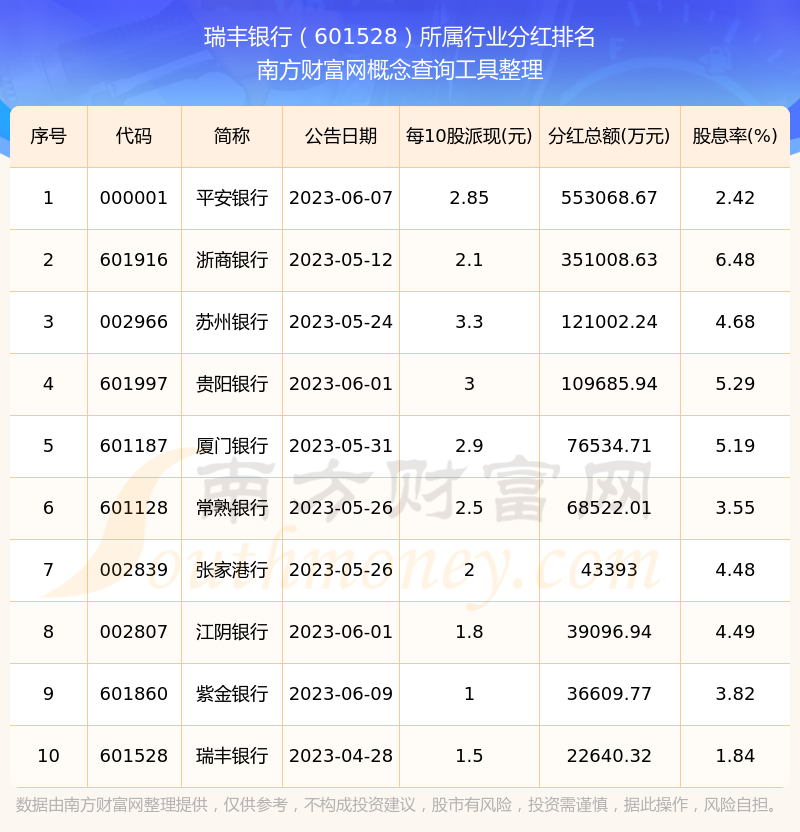 二、瑞豐銀行601528行業(yè)分紅排名