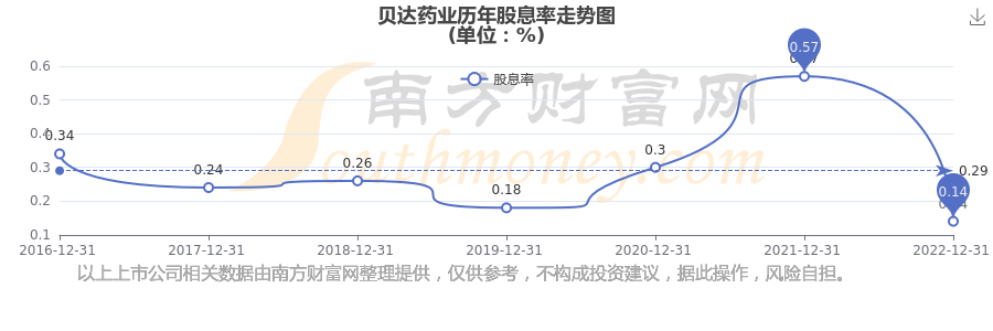 近年貝達藥業(yè)年度股息率走勢如下圖: