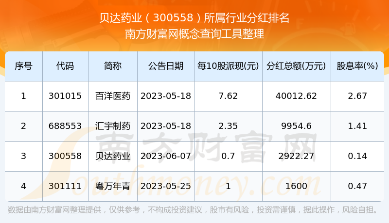 二、貝達藥業(yè)300558行業(yè)分紅排名