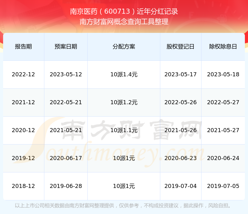 南京醫(yī)藥最新一次公布的分紅方案為10派1.4元。本次權(quán)益分派股權(quán)登記日為2023年5月17日,除權(quán)除息日為2023年5月18日,派息日為2023年5月18日。