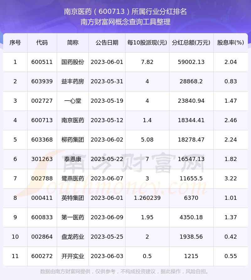 二、南京醫(yī)藥600713行業(yè)分紅排名