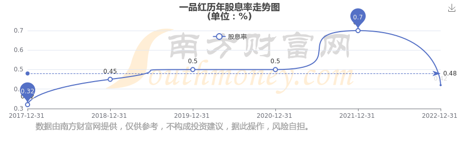 近年一品紅年度股息率走勢(shì)如下圖: