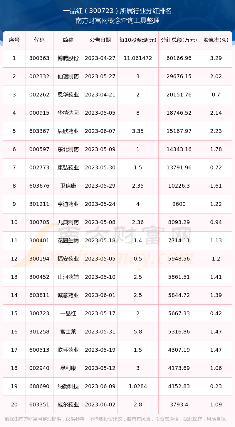 二、一品紅300723行業(yè)分紅排名