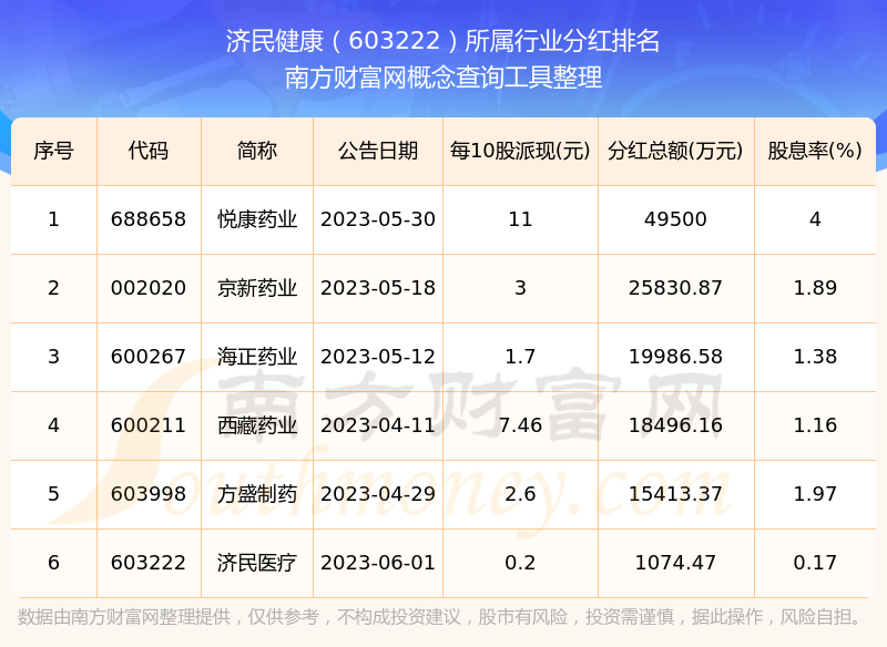 二、濟(jì)民健康603222行業(yè)分紅排名