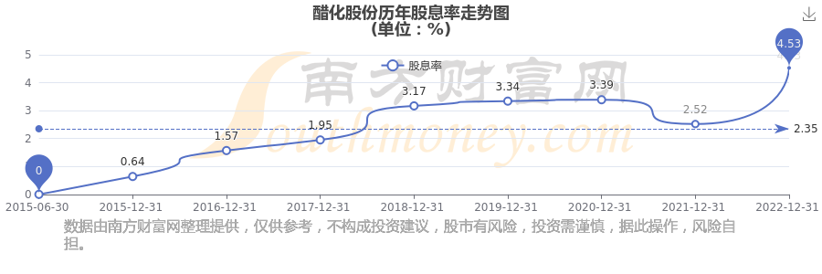 近年醋化股份年度股息率走勢如下圖: