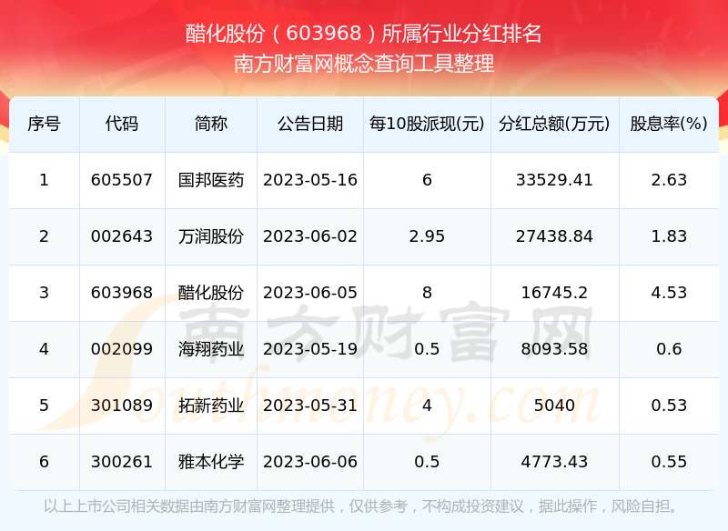 二、醋化股份603968行業(yè)分紅排名